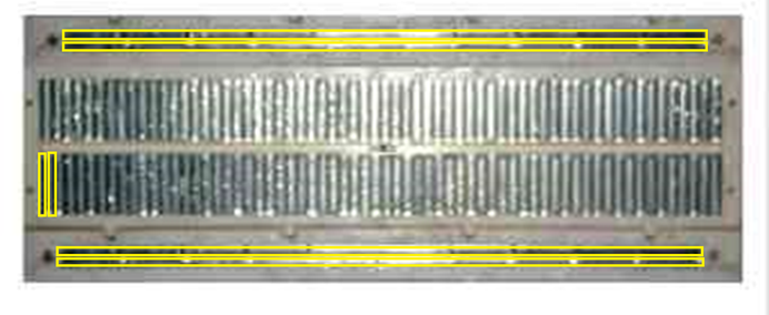 בתמונה הבאה סומנו שני הפסים האופקיים העליונים, שני הפסים האופקיים התחתונים ושני פסי מתכת בצד שמאל: