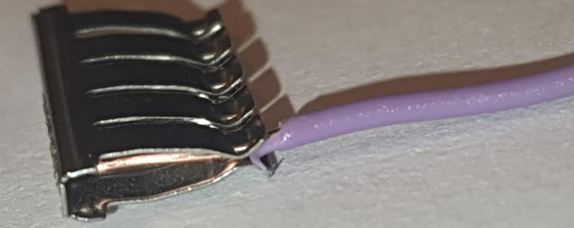 כדי לחבר חוט למטריצה יש לחשוף מספר מילימטרים מהבידוד שבקצה החוט וכך ניתן להכניס את החוט למטריצה כך שינעץ בין השיניים של פס המתכת למגע מיטבי: